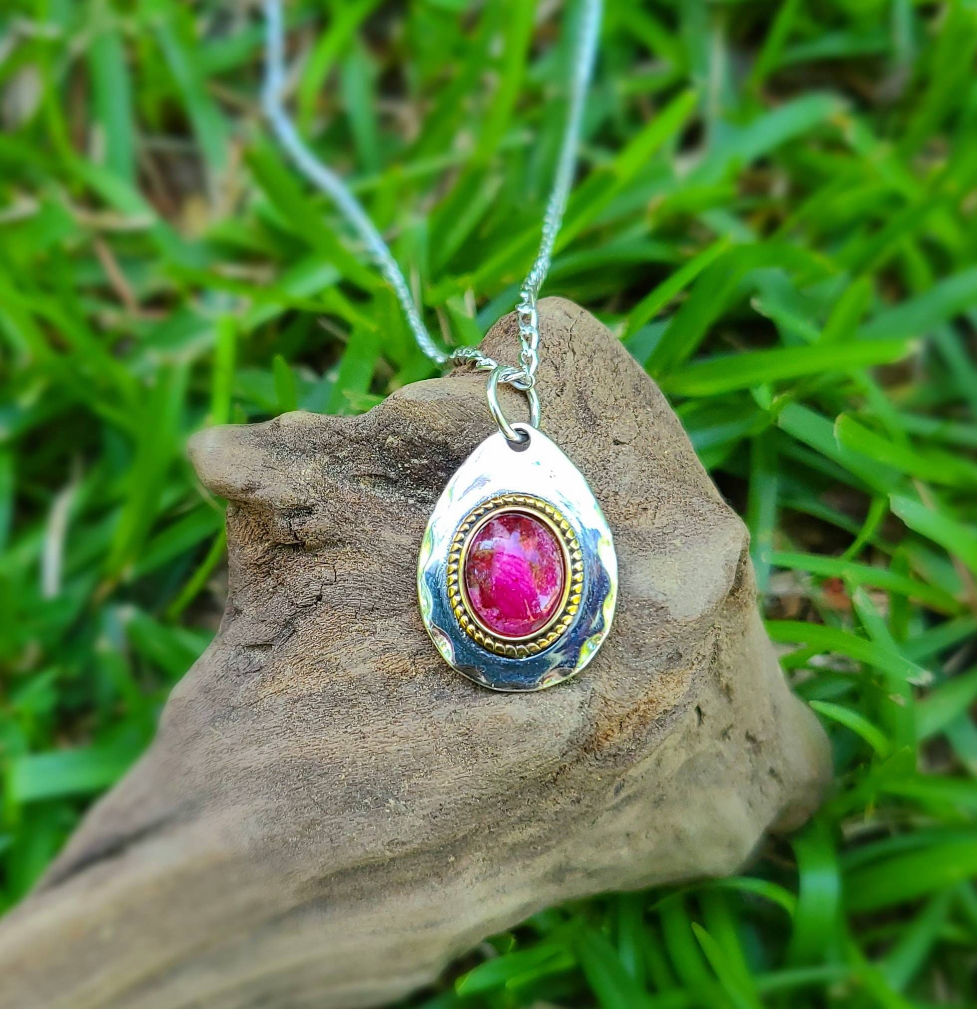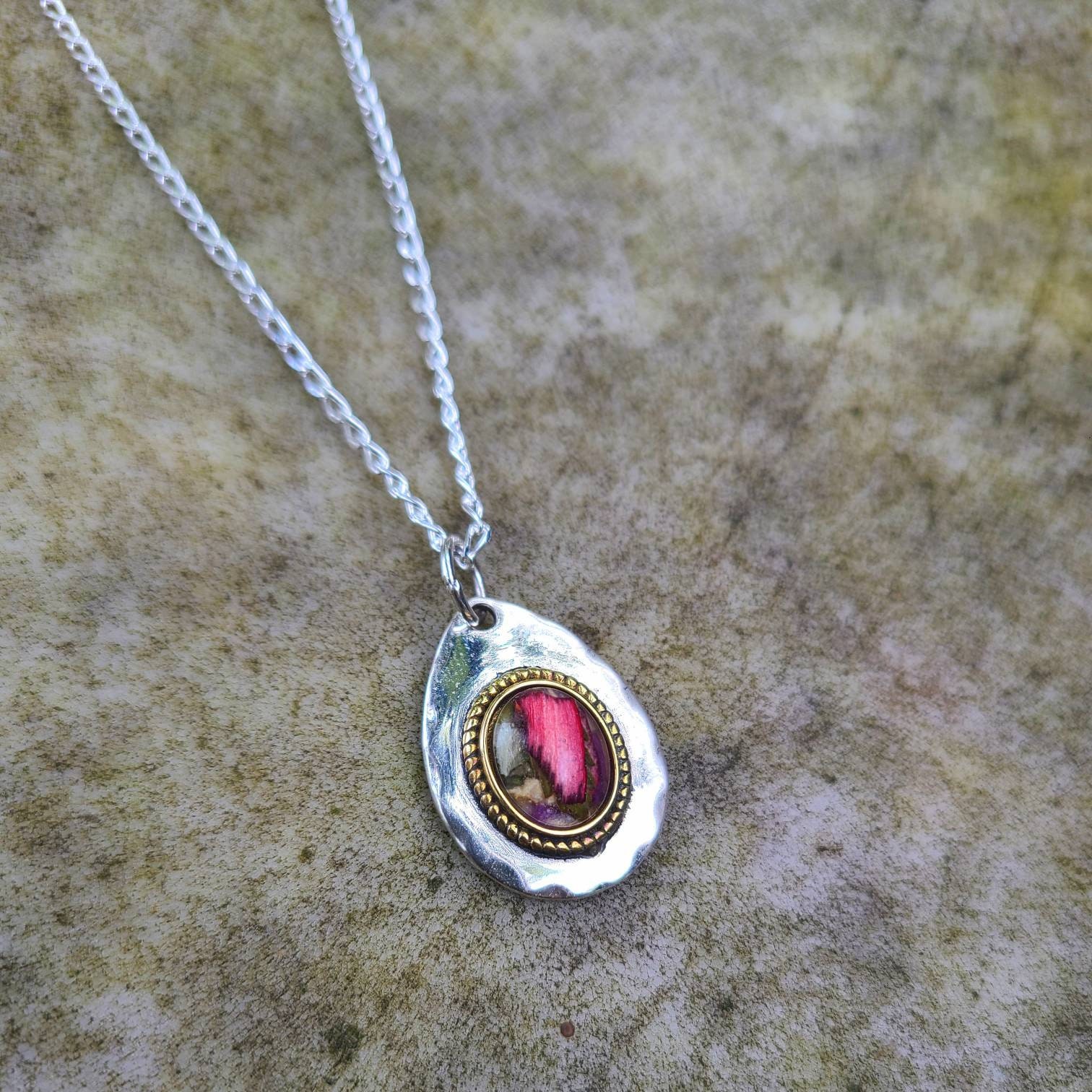 8 x10mm sterling silver Flower Petal Necklace. Memorial Jewelry, Memorial Beads. Wedding Flowers. Funeral Flowers. Made with real flowers