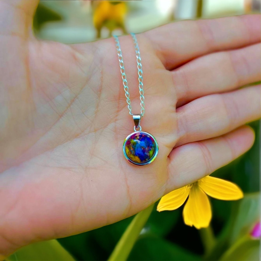Honor your loved one with a beautiful keepsake made from their dried flower petals. Each custom piece is thoughtfully handcrafted using just 1–2 large petals, lovingly preserved in a 12mm sterling silver pendant and sterling silver chain