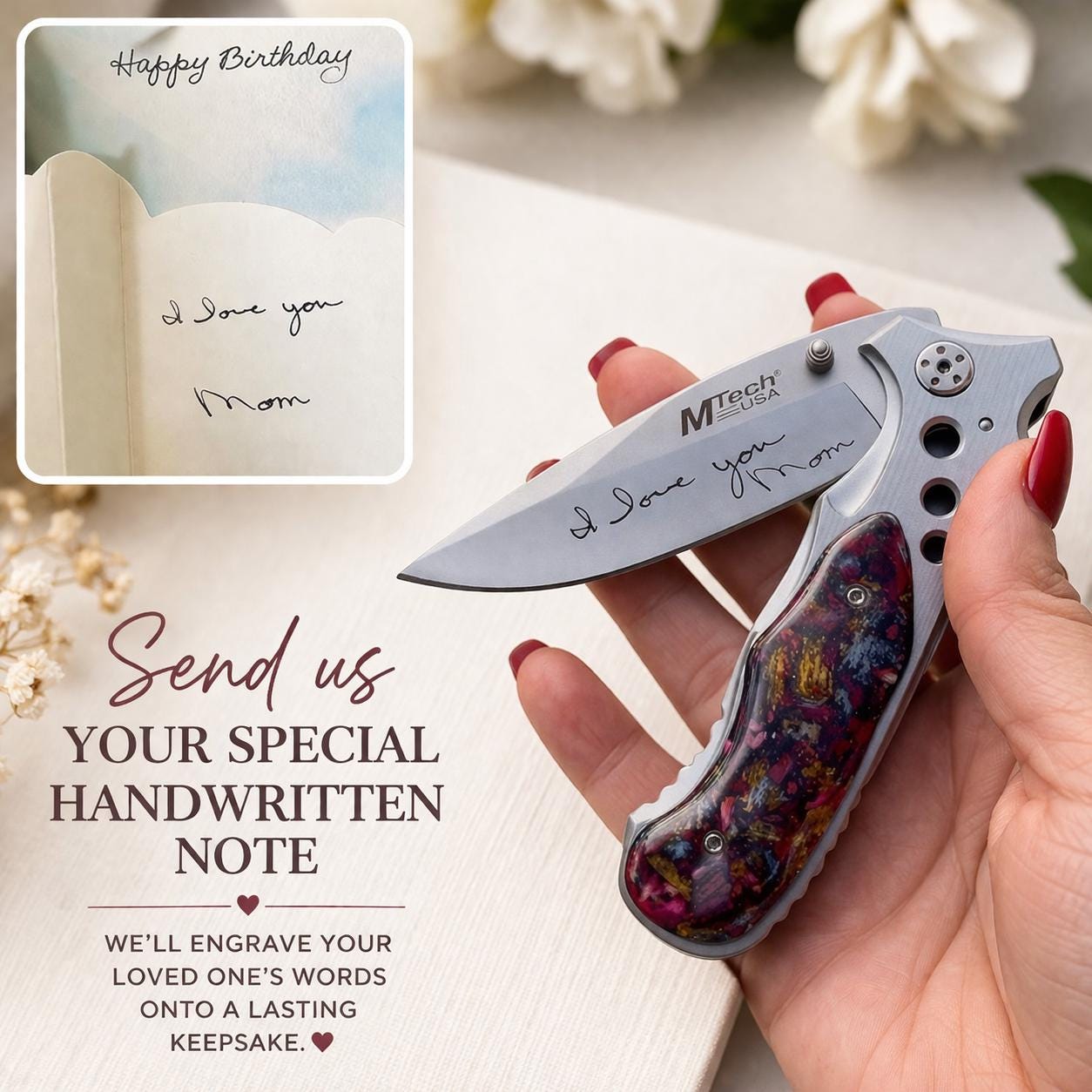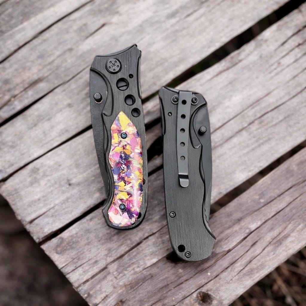 This custom memorial knife is carefully handcrafted using real funeral flowers, preserving their memory in a one-of-a-kind keepsake. Whether you are honoring a father, husband, son, or loved one, this piece is designed to provide comfort, connection, and remembrance.