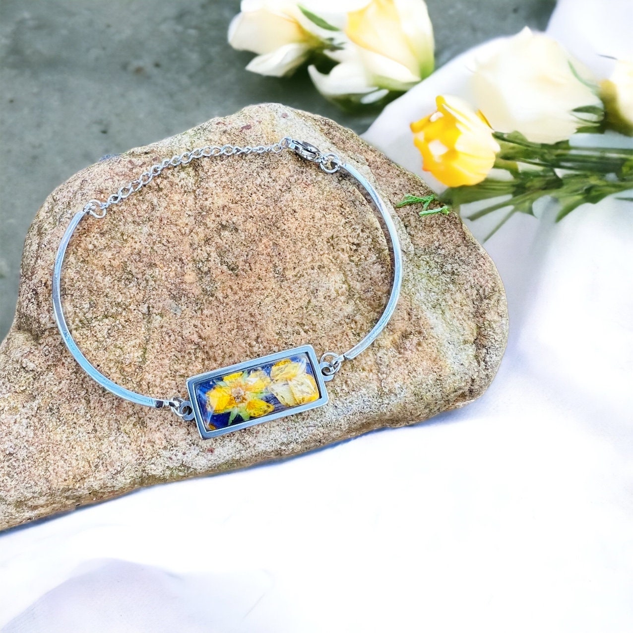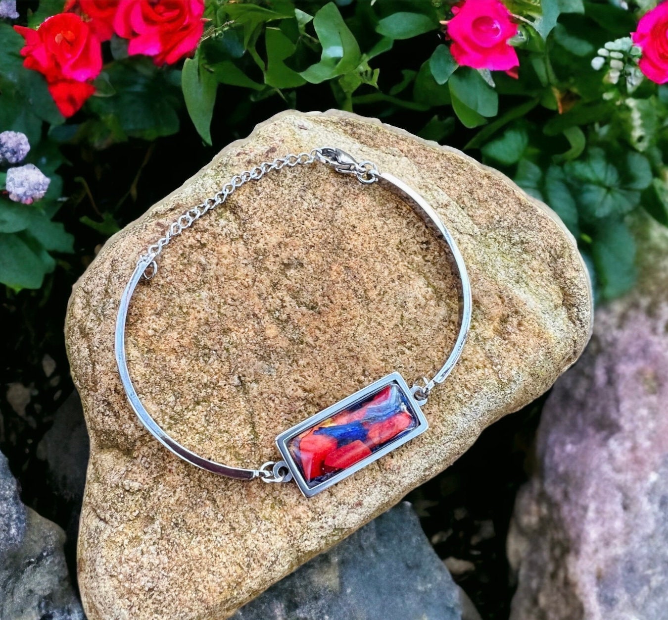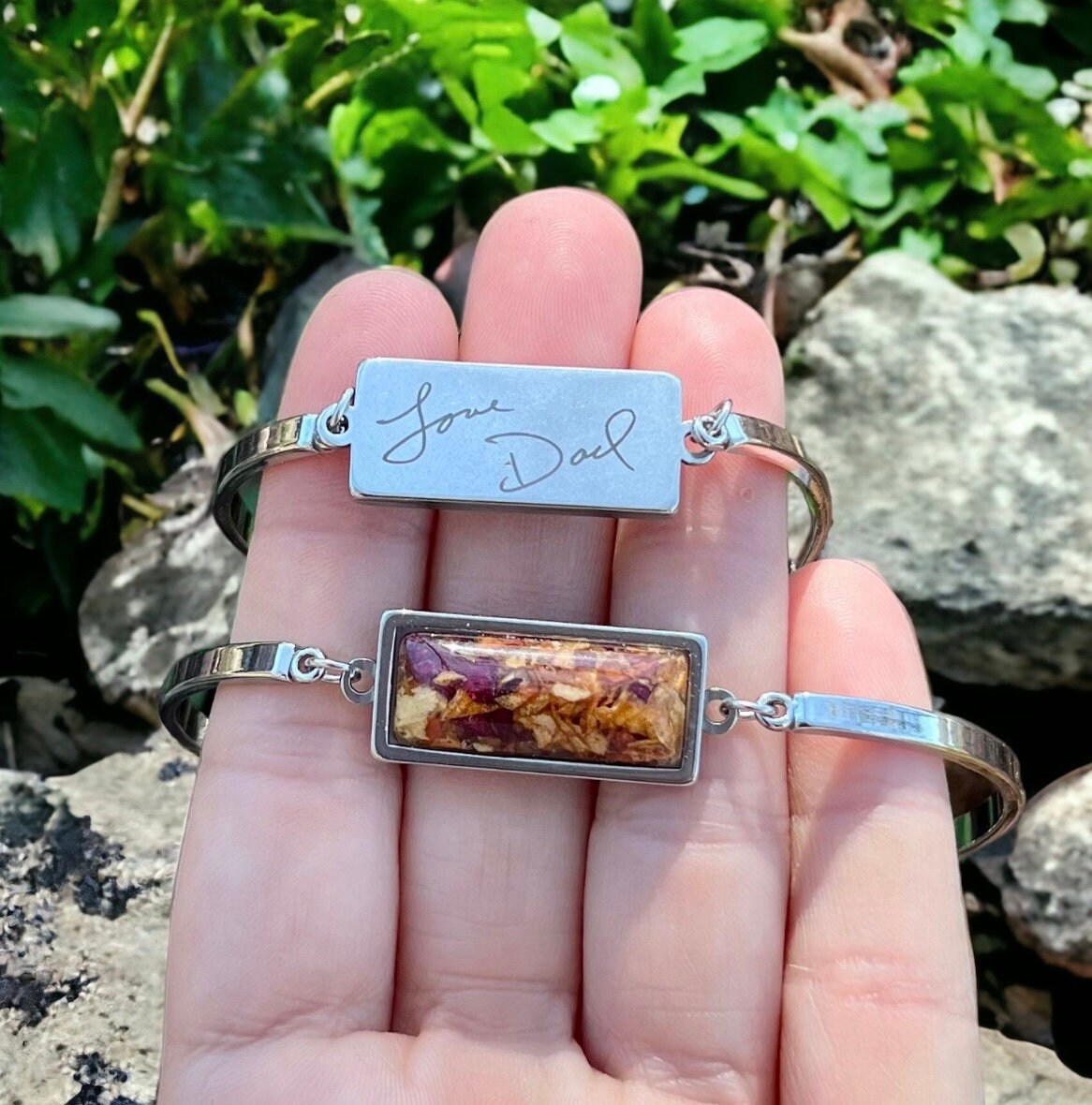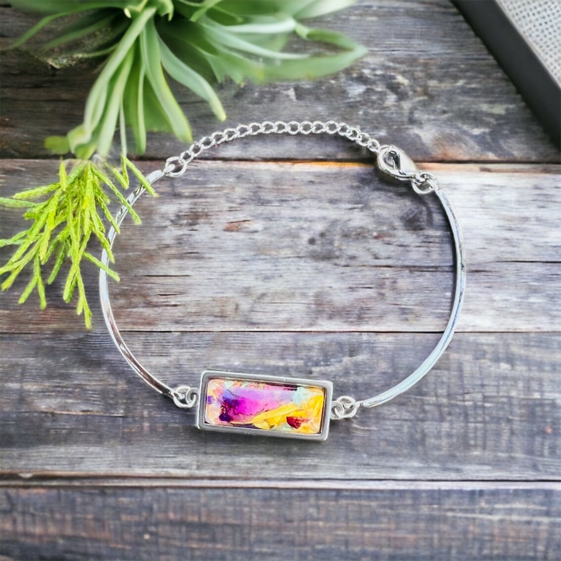 10x25mm Stainless Steel bracelet. Memorial Jewelry, Wedding flowers. Jewelry made with funeral flowers. Made with real flowers