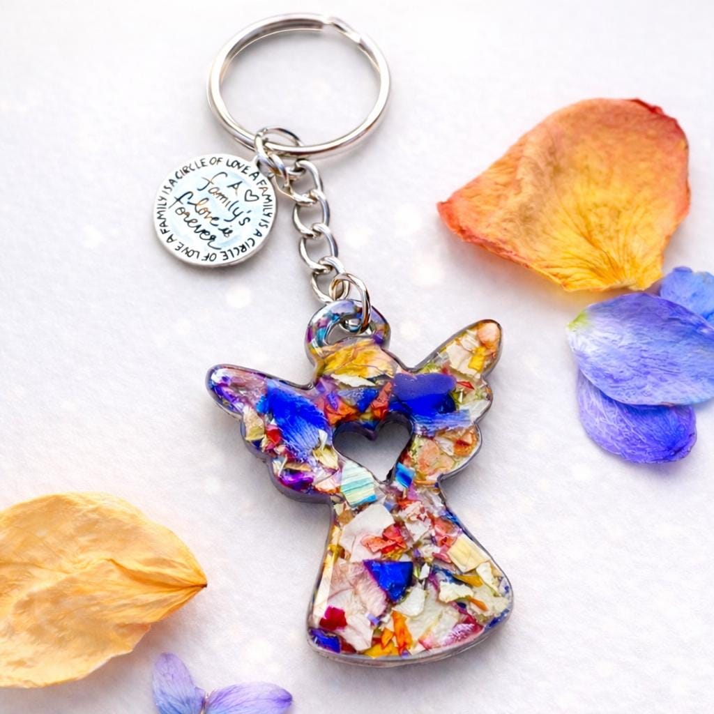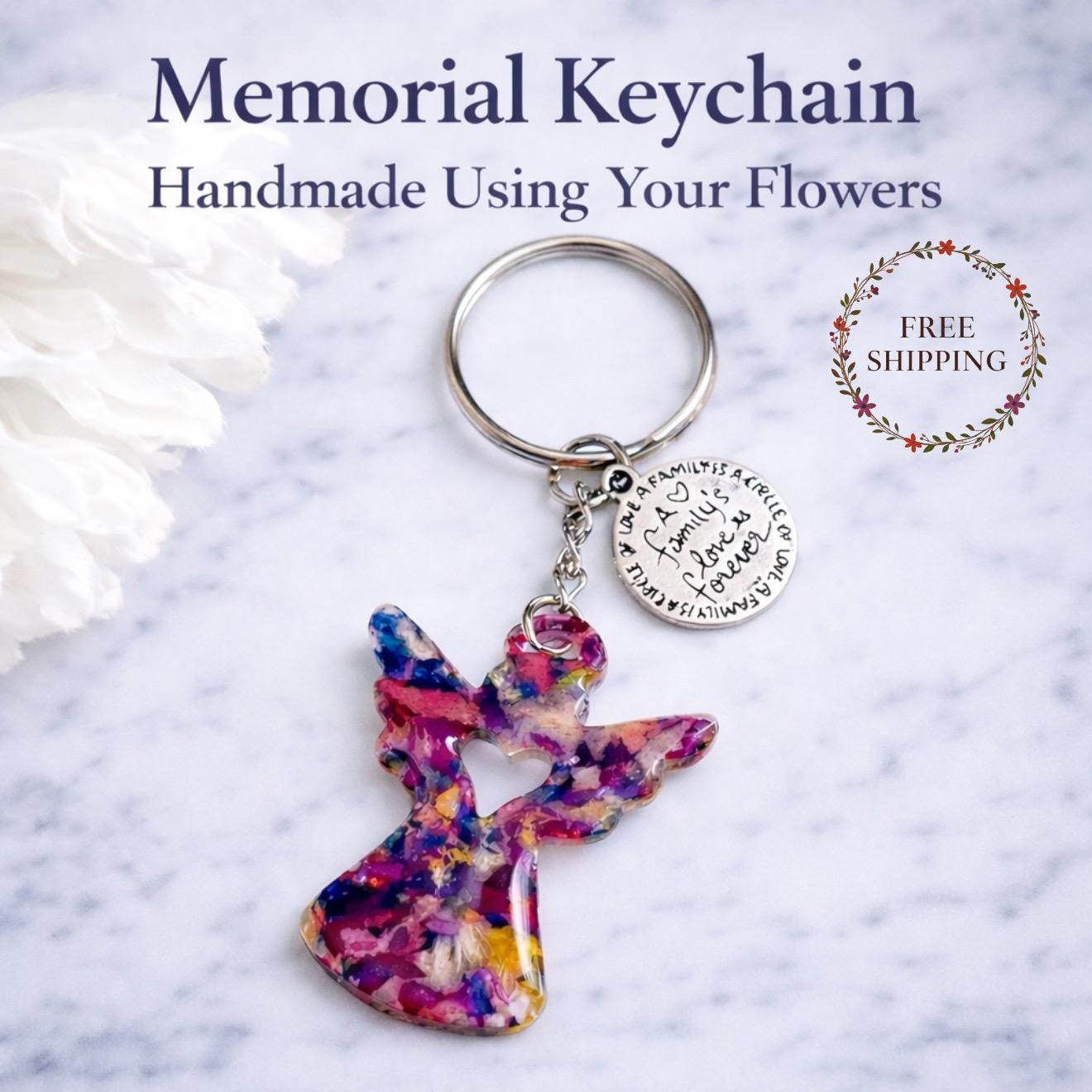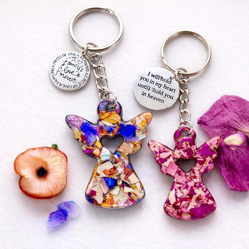 Memorial Angel Keychain – Handmade with Your Flowers, Custom Keepsake Jewelry
