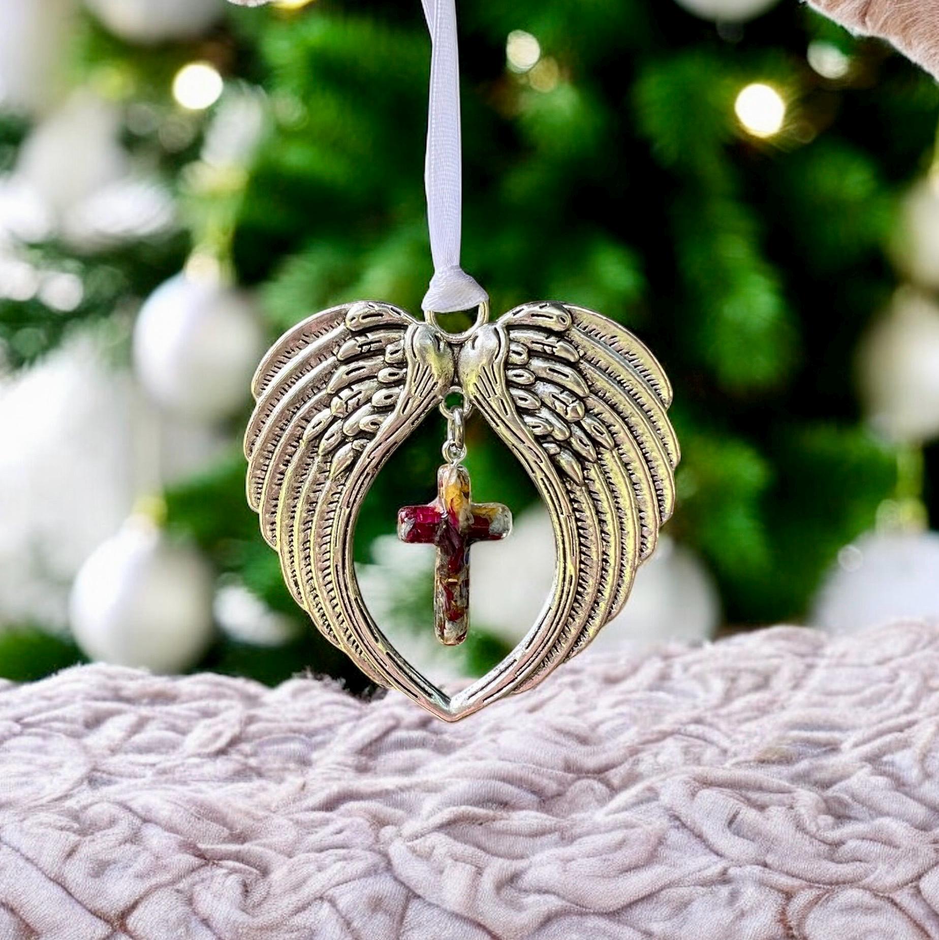 Angel Wing Christmas Ornaments. Memorial Jewelry, Memorial Beads. Wedding Flowers. Funeral Flowers. Made with real flowers.