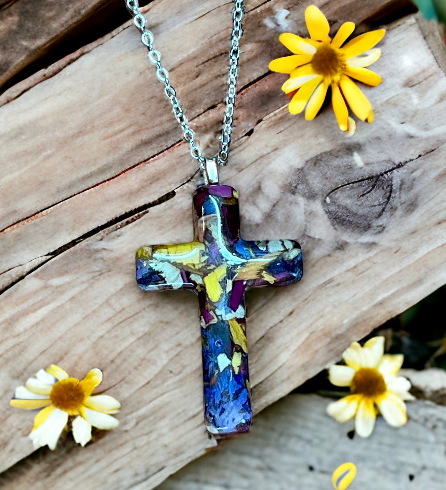 Cross Memorial Bead keychain or Necklace. Memorial jewelry, Wedding Flowers. Funeral Flowers. Made with real flowers