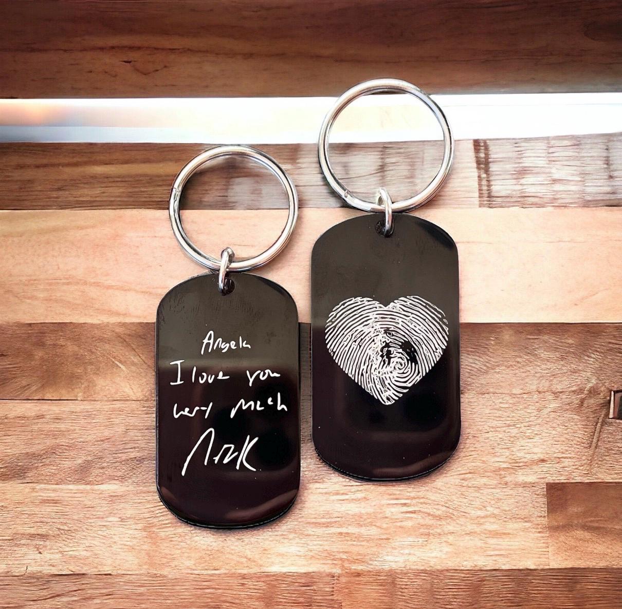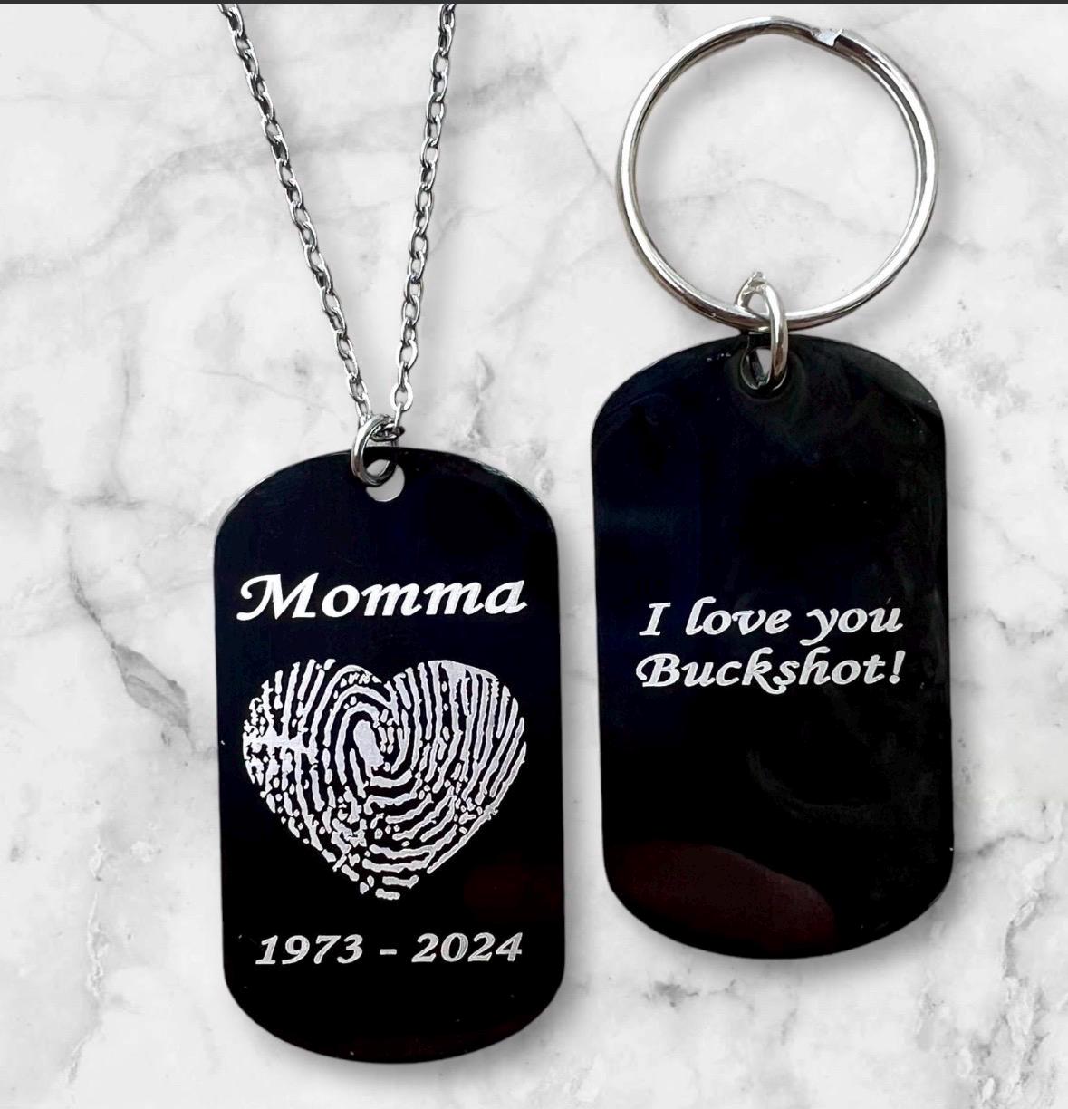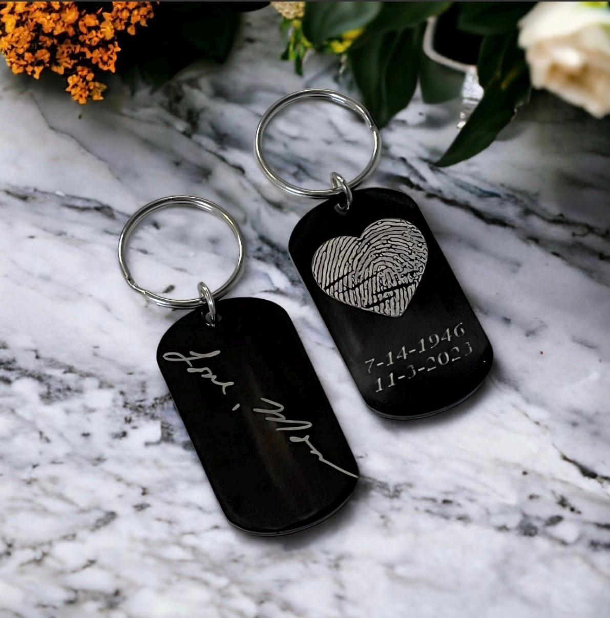 Dog Tag Keychain Memorial Jewelry, Memorial necklace Memorial Keepsake. Fingerprint jewelry.