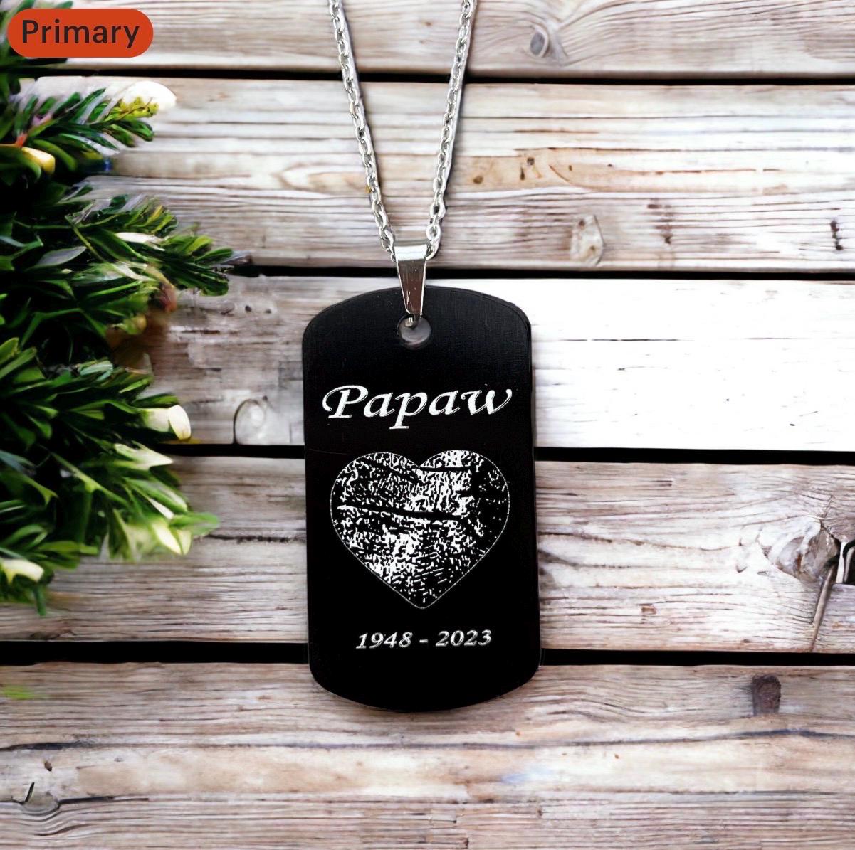Perfect memorial keepsake to keep with you. Can include fingerprint or no fingerprint. Can also include custom handwriting.