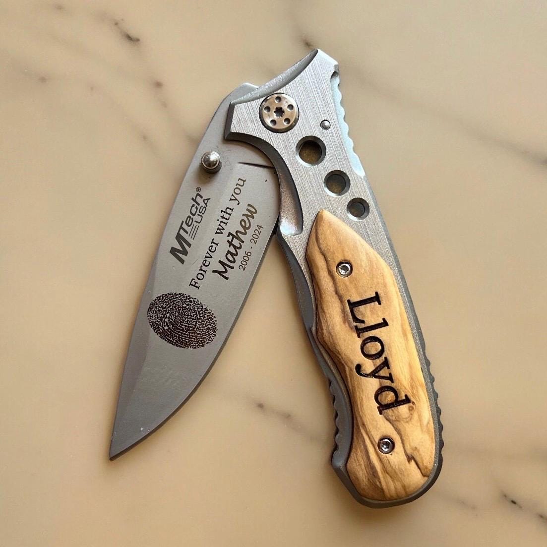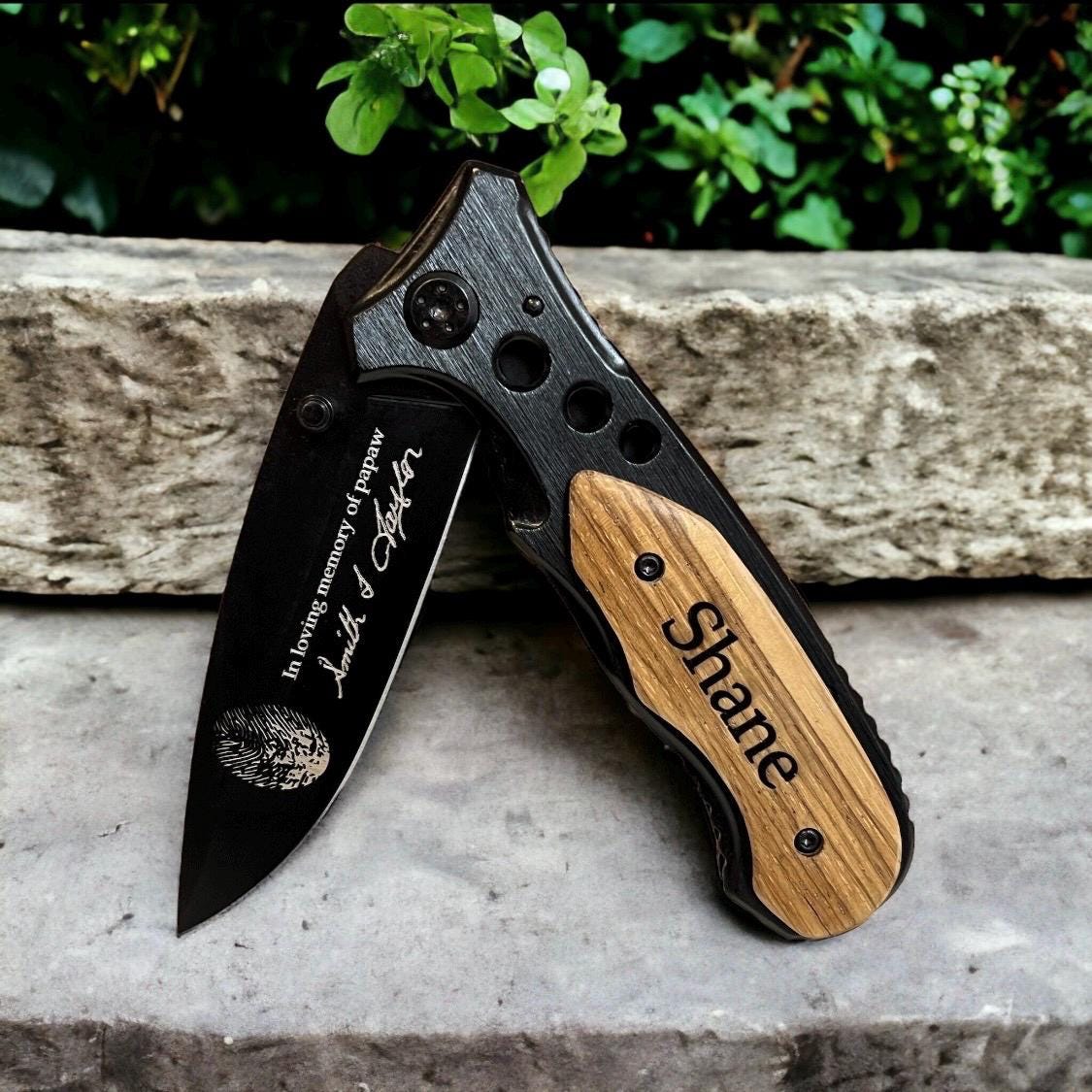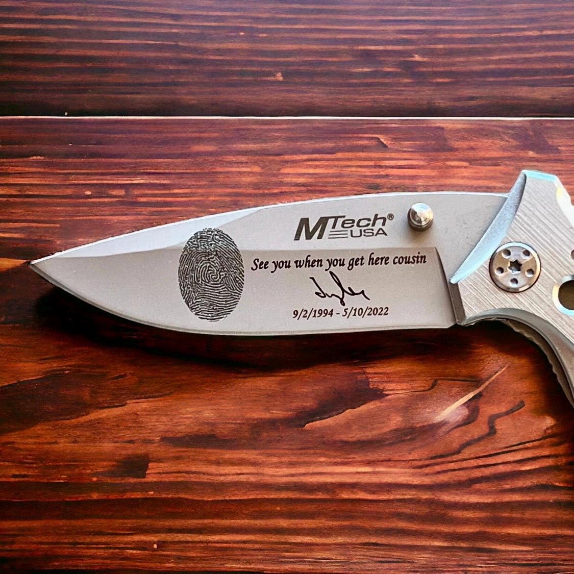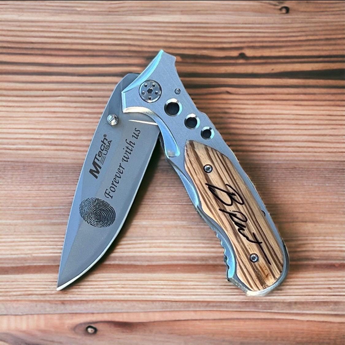Custom Fingerprint Knife, Custom Knife for Him, Custom Engraved Knife, Perfect Groomsman Knife, Engraved Pocket knife, Custom Handwriting Engraved Knife