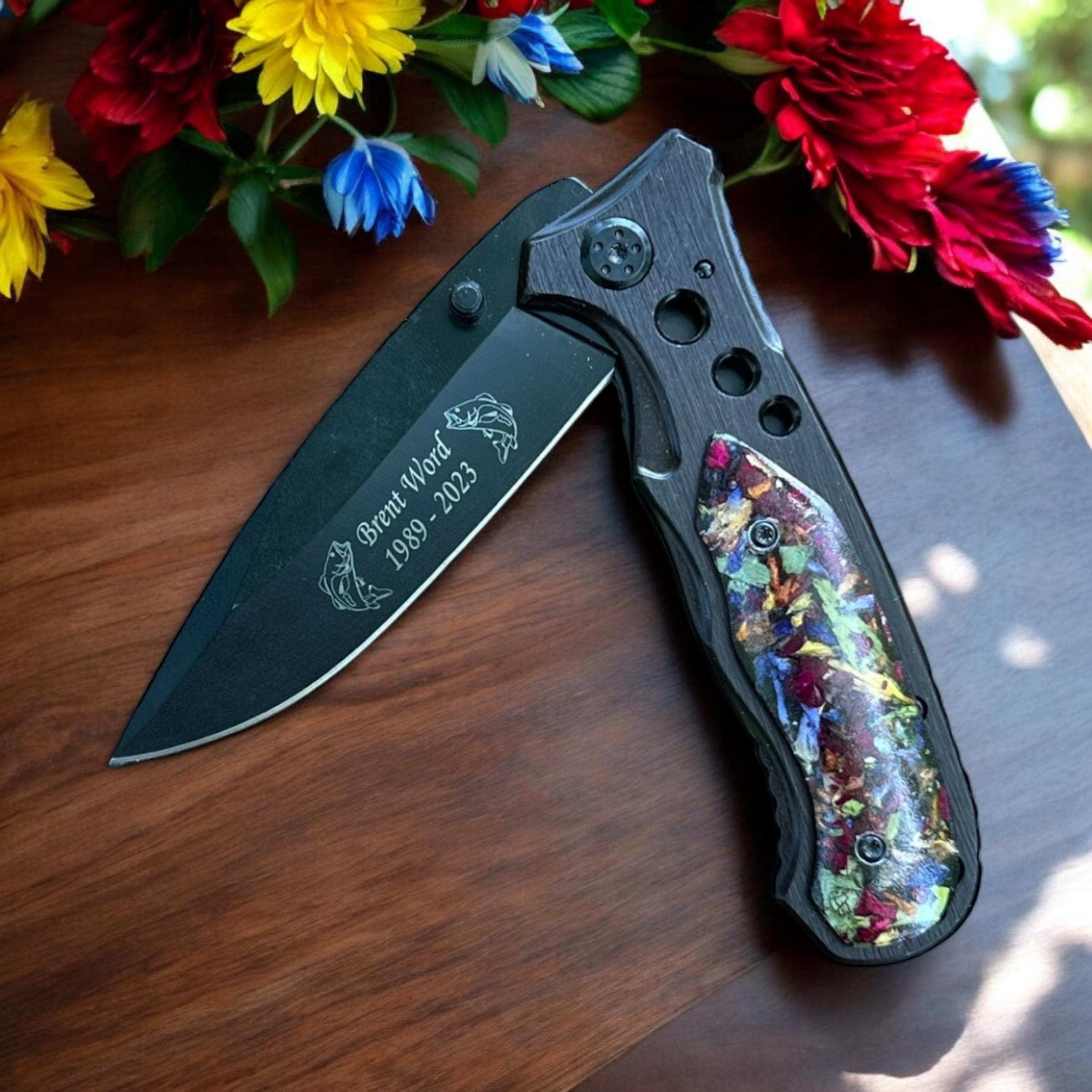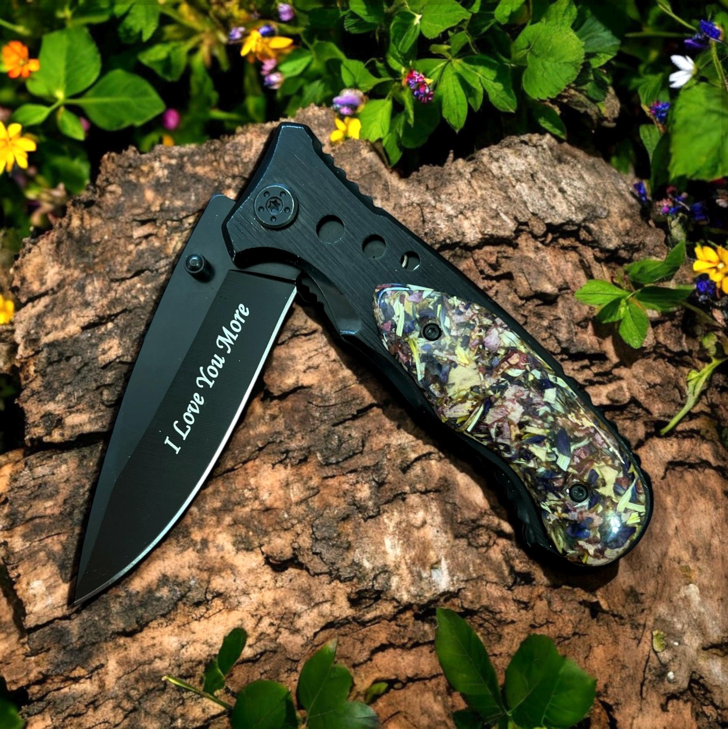 Funeral Flower Knife, Memorial Knife, Knife made with Flower Petals, Keepsake Knife, Engraved Knife, Wedding Knife, Memorial Jewelry
