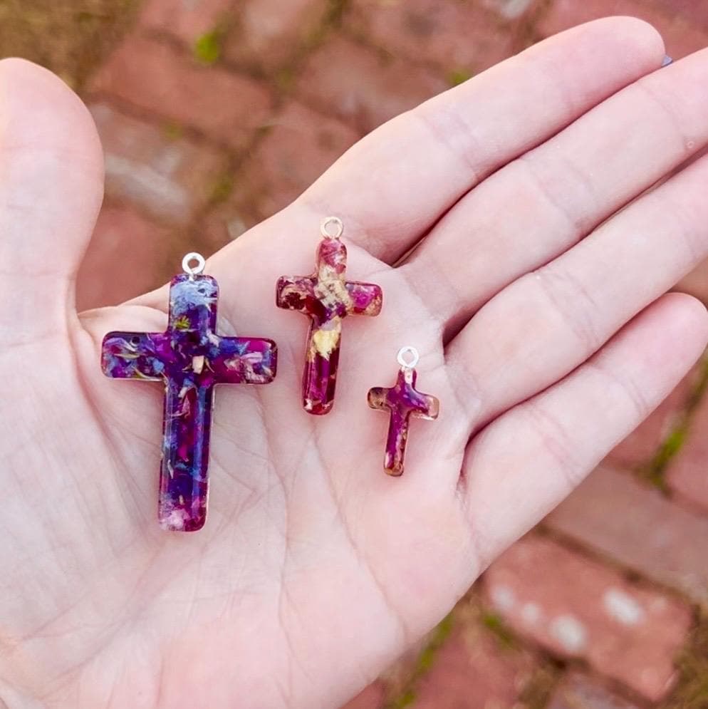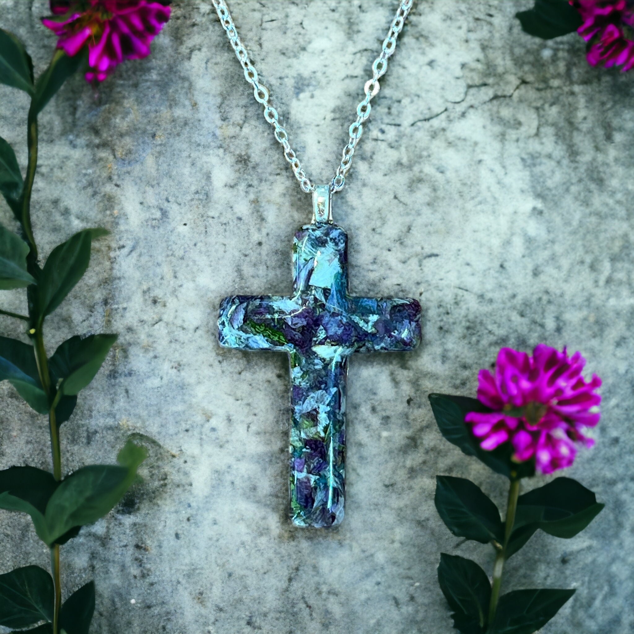 Cross Memorial Necklace made with flowers. Memorial jewelry, Wedding Flowers. Funeral Flowers. Made with real flowers