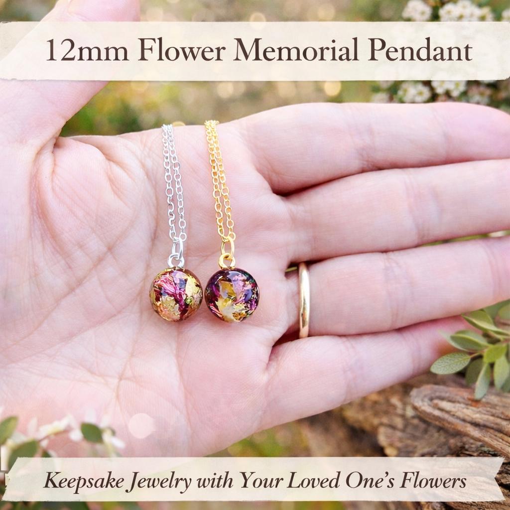 Memorial Necklace Made with Your Own Petals – 12mm Bead Jewelry – Funeral Flower Keepsake – Custom Sympathy Gift
