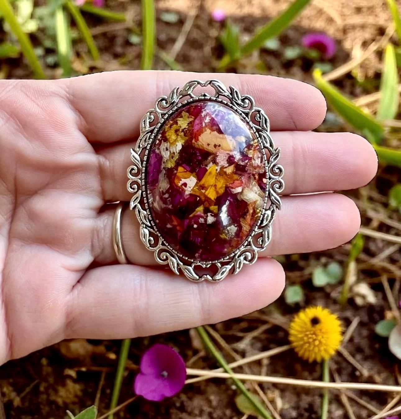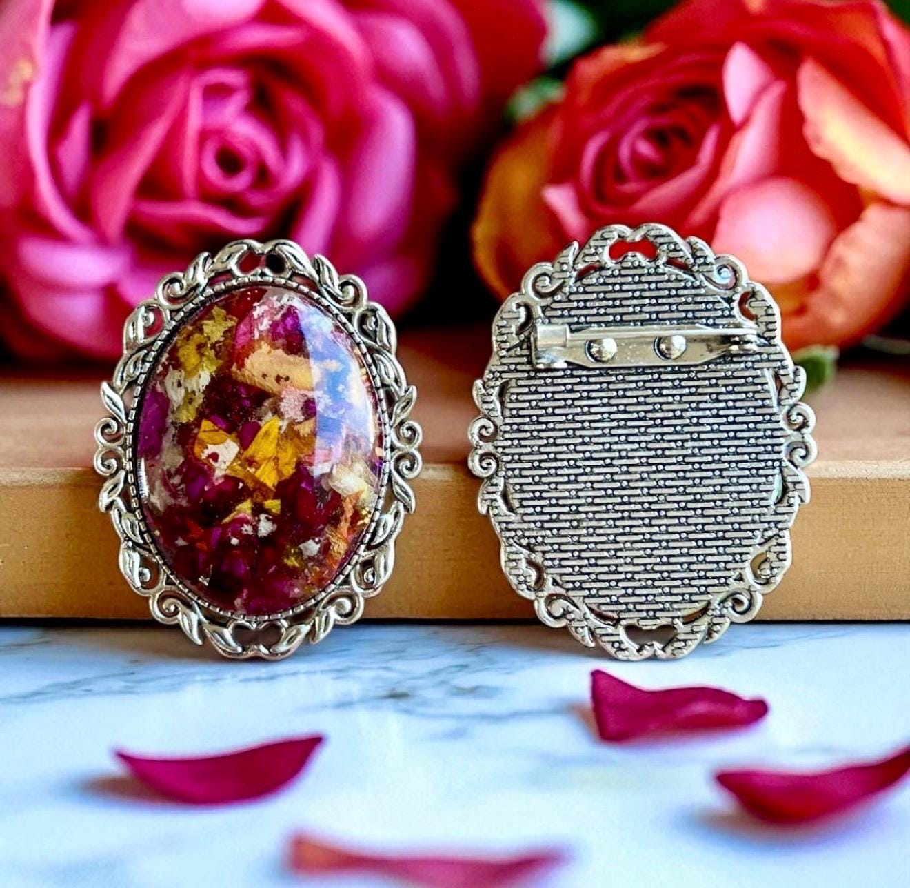 30x40mm Memorial Broach. Memorial Jewelry, Wedding Flowers. Funeral Flowers. Made with real flowers