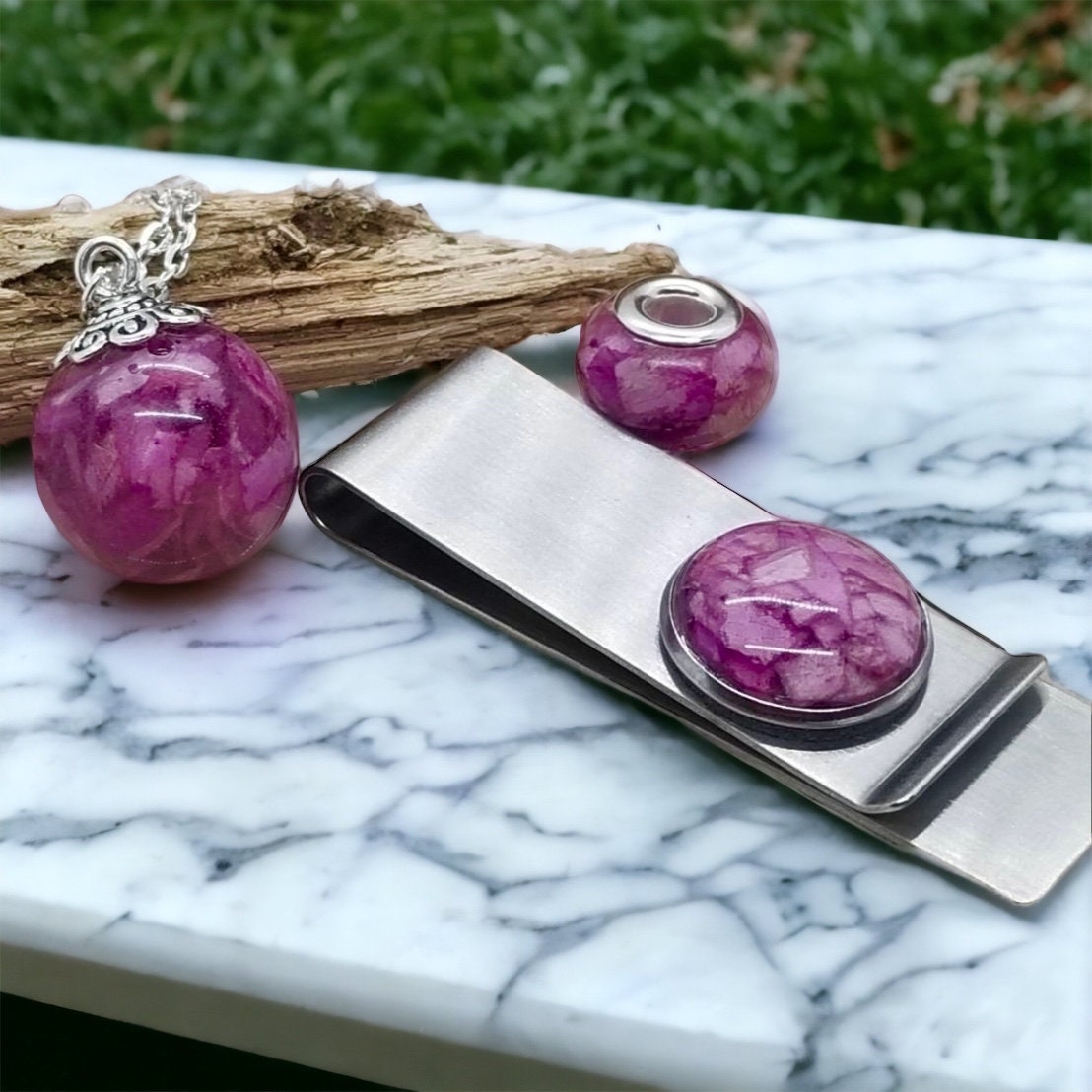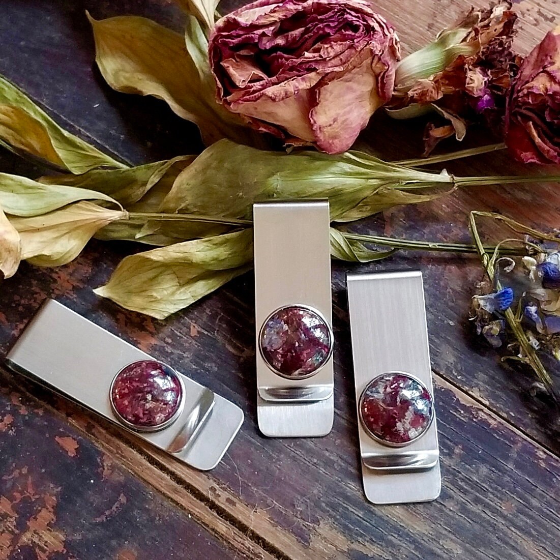 Money clip. Memorial Jewelry, Memorial Beads. Wedding Flowers. Funeral Flowers. Made with real flowers