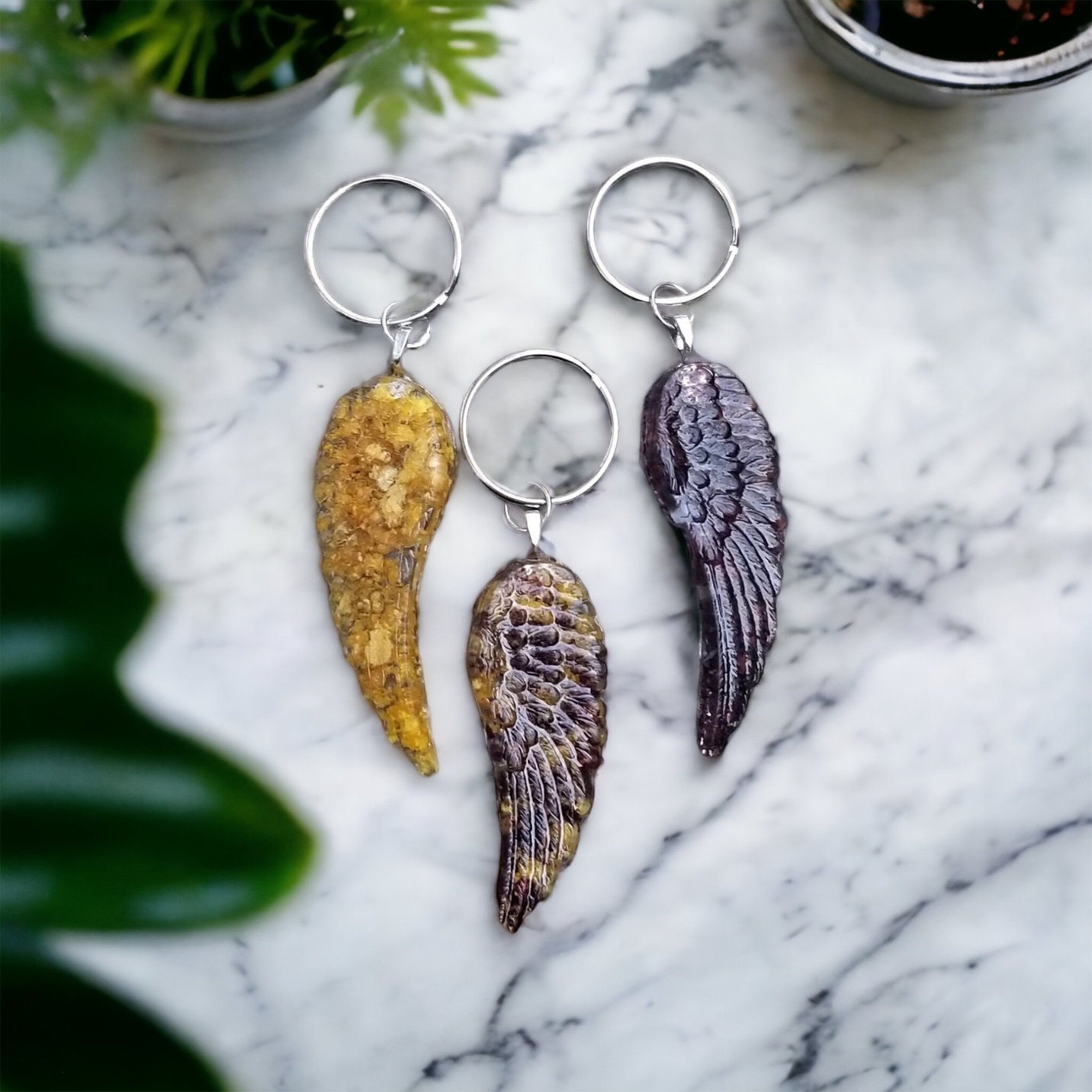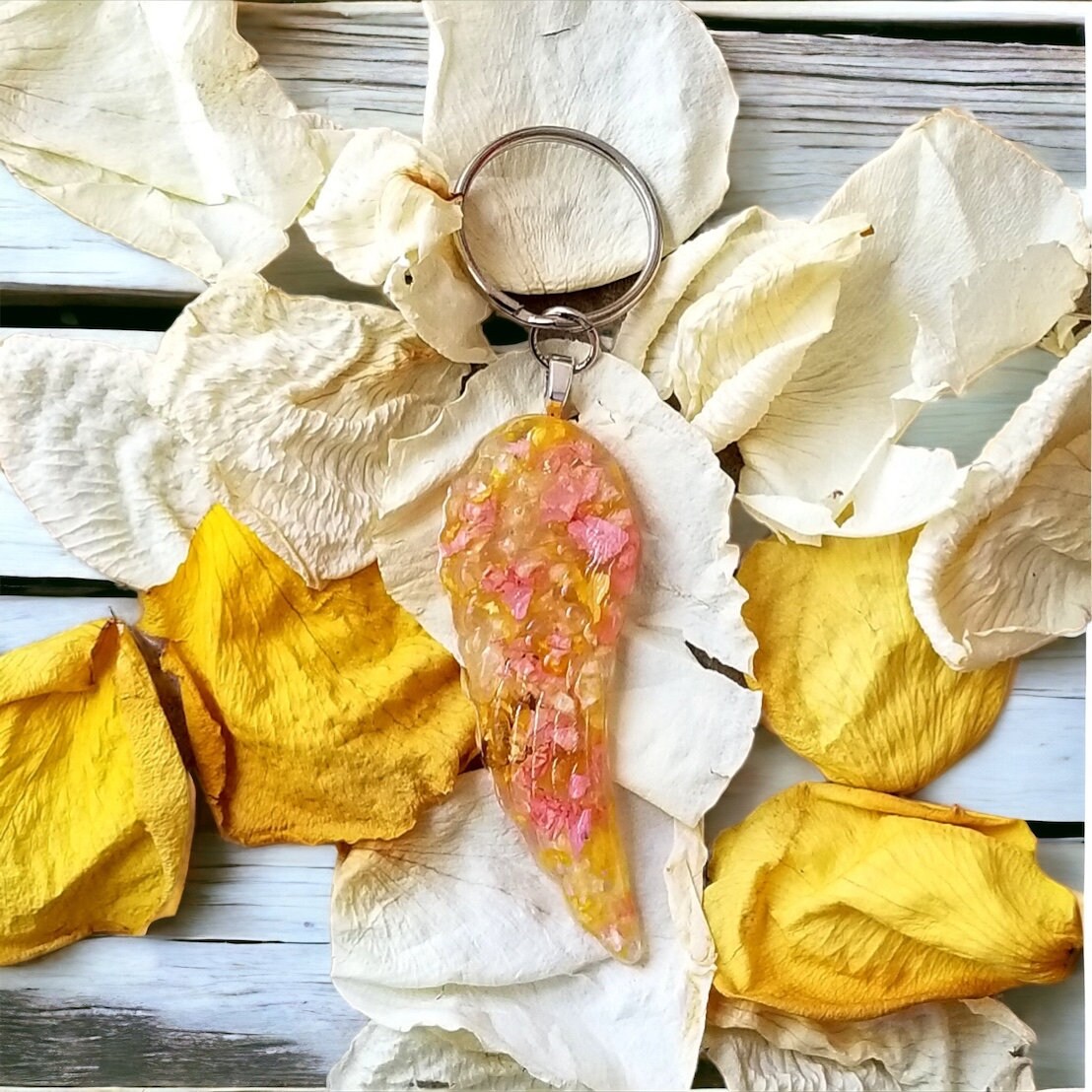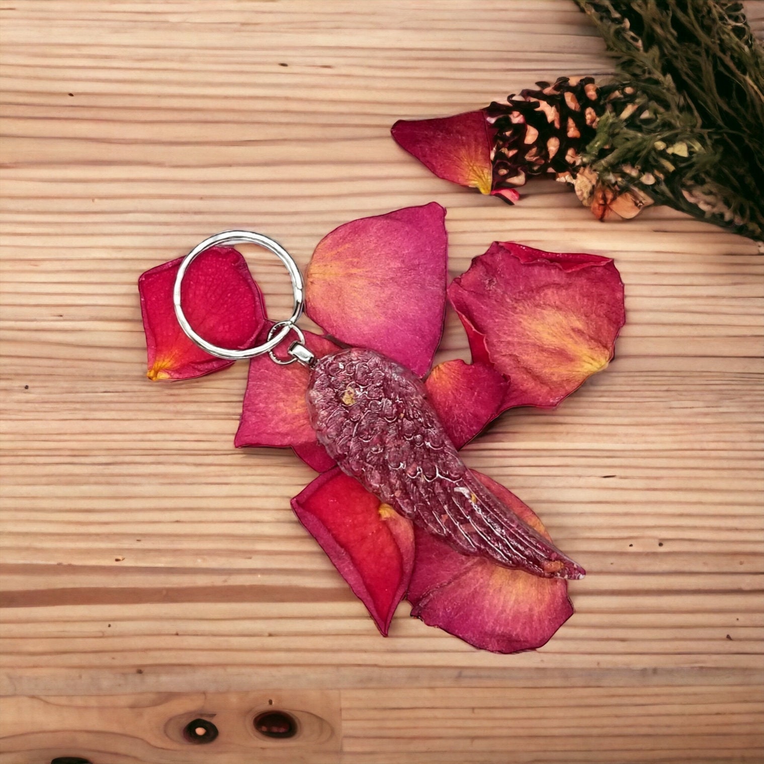 Flower petal wing keychain. Memorial Jewelry, Memorial Beads. Wedding Flowers. Funeral Flowers. Made with real flowers