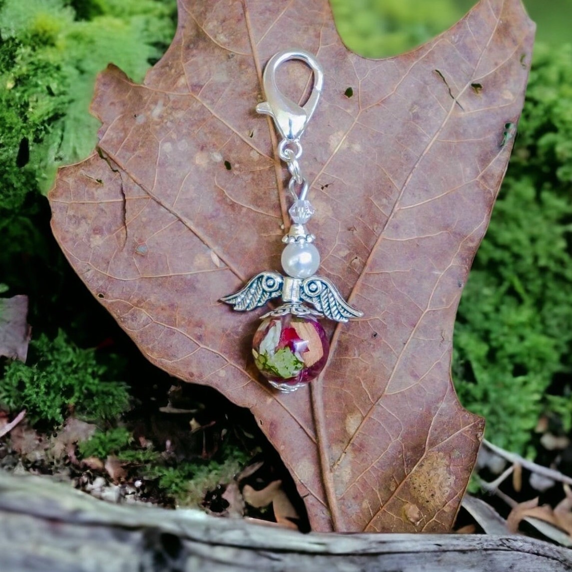 Memorial Bead charm. Memorial Jewelry, Wedding Flowers. Funeral Flowers. Made with real flowers