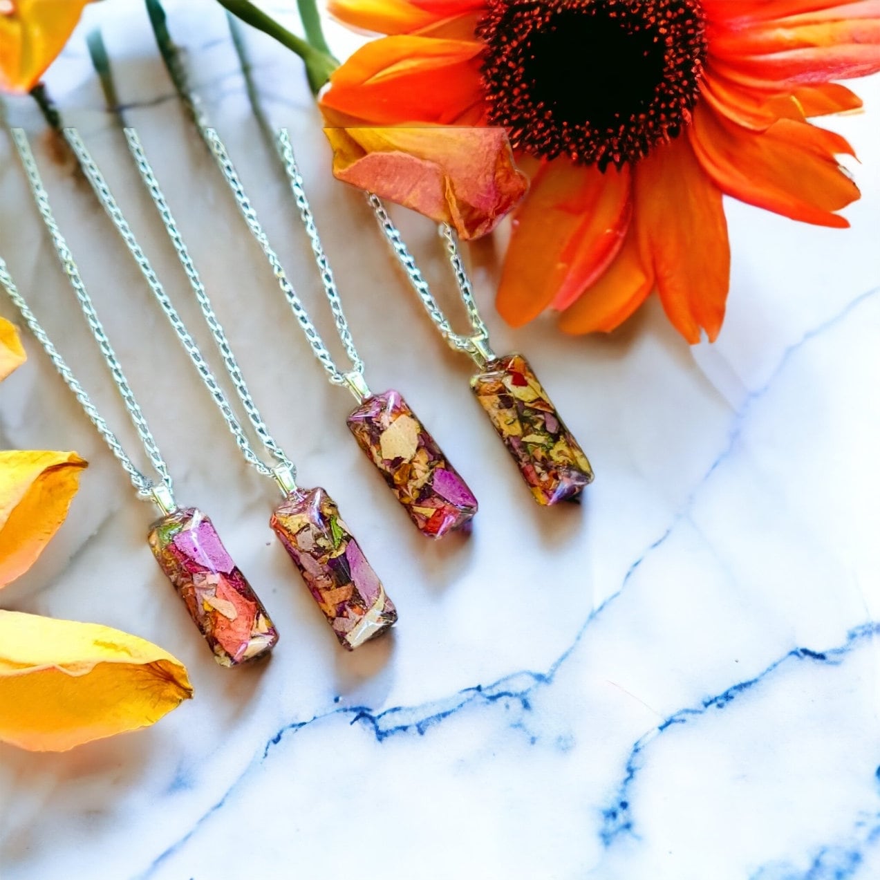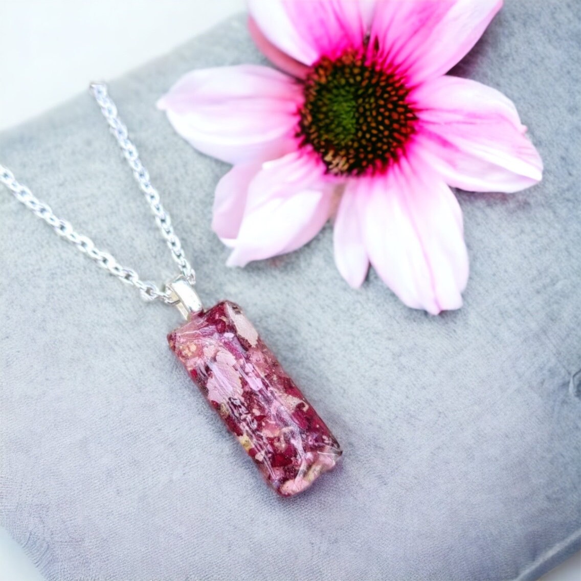 Rectangle pendant. Memorial Jewelry, Memorial beads. Wedding flowers. Funeral flowers. Made with real flowers